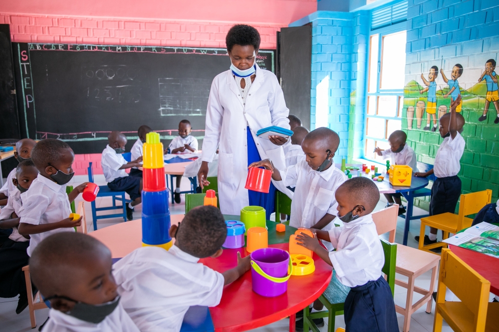 Children during a class at Munini Early Childhood Development (ECD) Centre at Munini Integrated Model Village, Nyaruguru District.  Photo by Olivier Mugwiza.