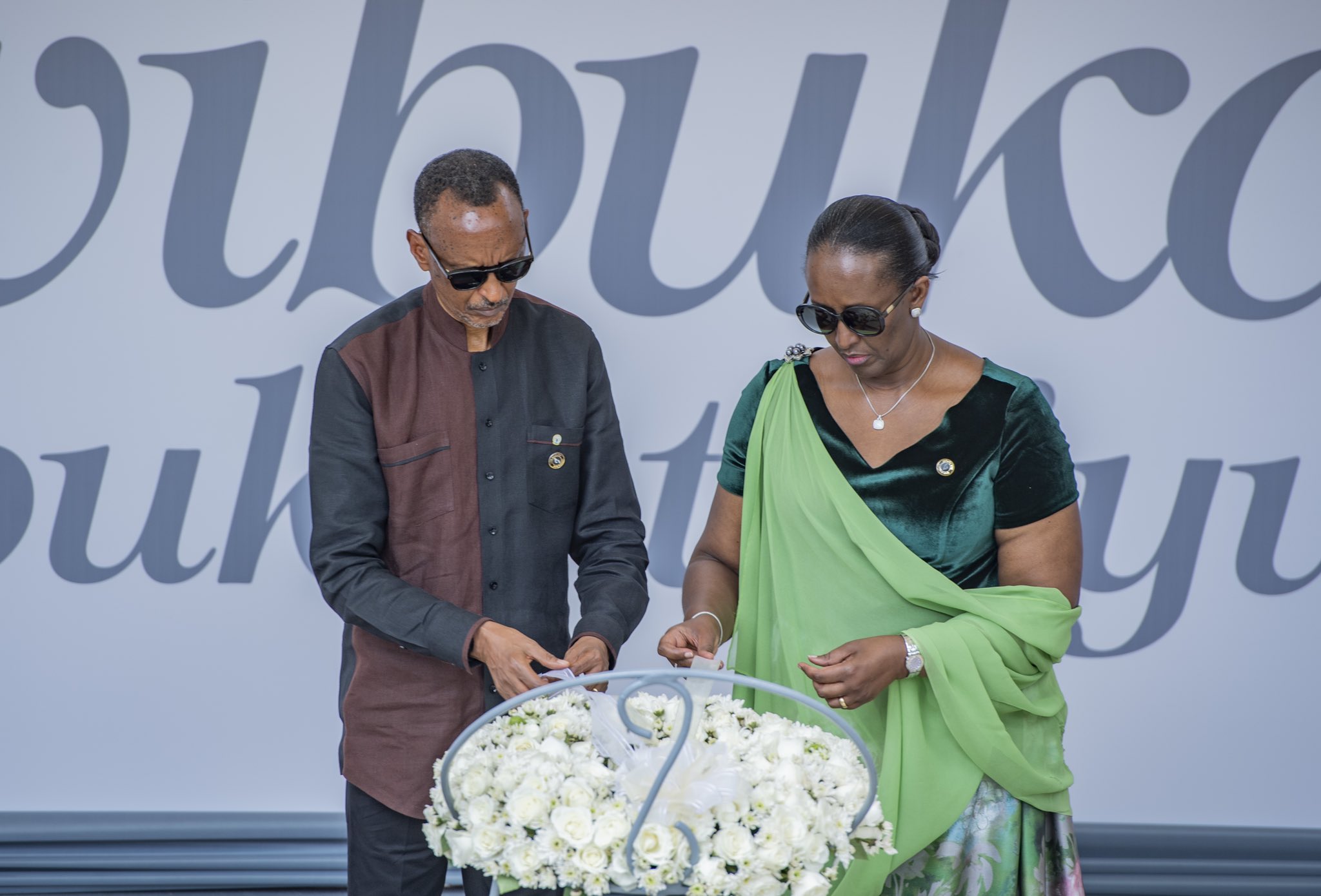 President Paul Kagame and First Lady Jeannette Kagame lay a wreath at the Kigali Genocide Memorial as the country started the 28th commemoration of the Genocide against the Tutsi on April 7, 2022.