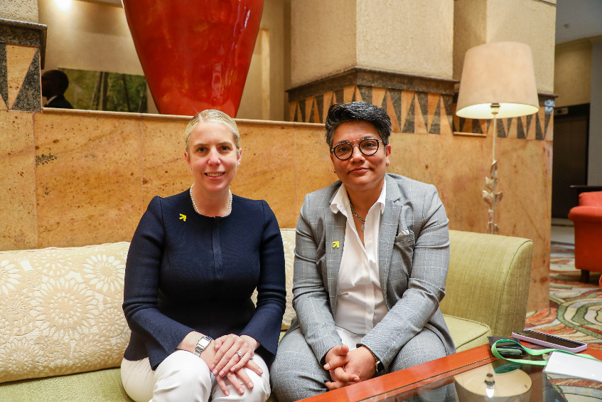 Maliha Khan, Women Deliveru2019s President and CEO (L) and Kathleen Sherwin, Women Deliveru2019s outgoing CEO and incoming board member during the interview at Kigali Serena Hotel. / Photo by Dan Nsengiyumva