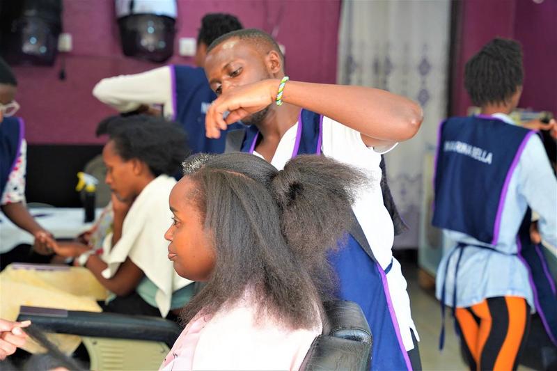 Clients at Marina Bella salon where natural hair dressing services are provided in Kigali.