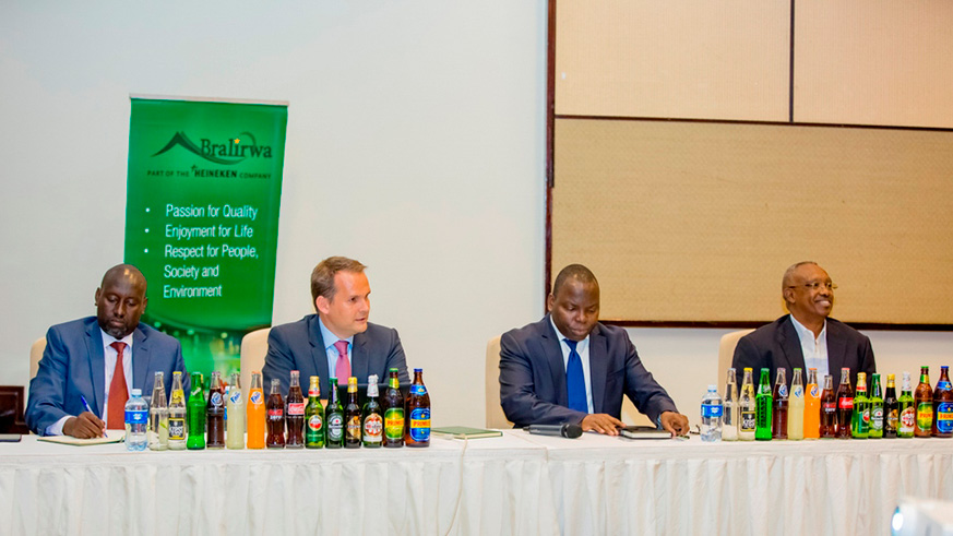 Minister for Environment, Dr Vincent Biruta addresses journalists during a media briefing as Coletha Ruhamya, the Director General of Rwanda Environment Management Authority looks on on Wednesday. / Craish Bahizi