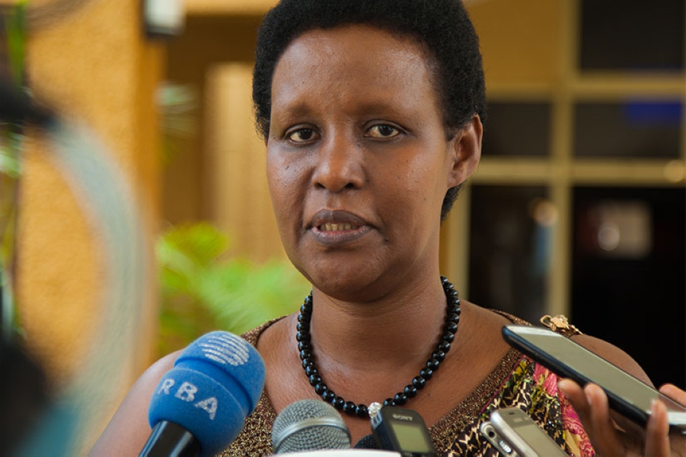 The Minister of Gender and Family Promotion Consolée Uwimana addresses MPs a session in parliament on February 9. Courtesy