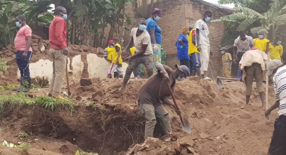 Workers on duty during the construction works to upgrade of the road that started in Jali Sector