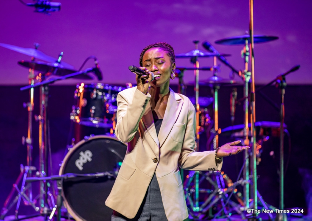 U.S-based gospel artiste Gentil Misigaro performs during Christmas service at
