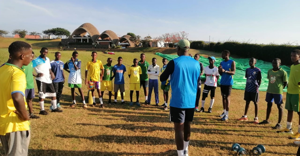 Gasogi coach Ahmed Adel talks to the club’s players during a training session. The Egyptian coach has appealed the CAF ban that was imposed on him recently. Photo: Courtesy.