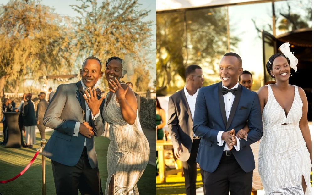 Rwandan star Bruce Melodie accompanied by producer Element for his 'Best artist Rwanda' award