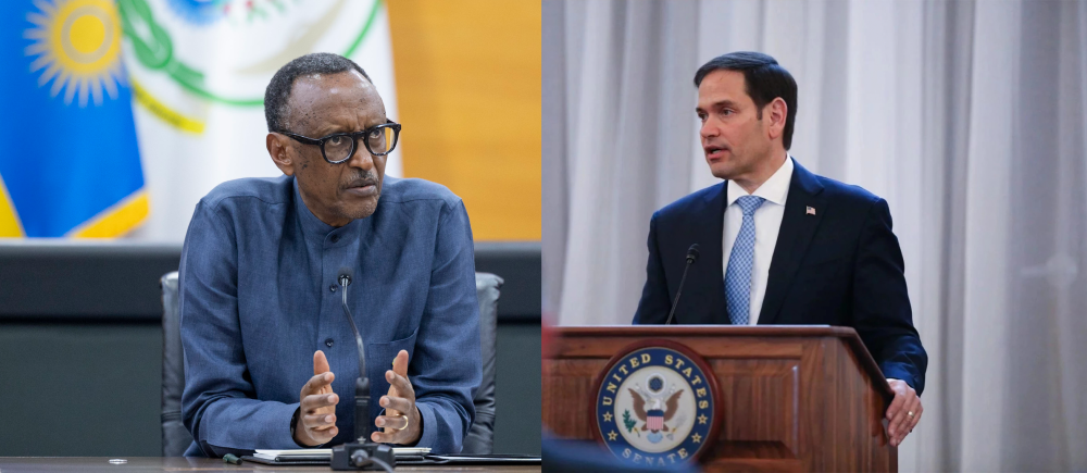 Rwanda's Minister of Foreign Affairs Olivier Nduhungirehe shakes hands with his DR Congo counterpart Therese Kayikwamba Wagner after signing the peace agreement, as US Secretary of State Marco Rubio looks on in Washington DC, on June 27. Courtesy