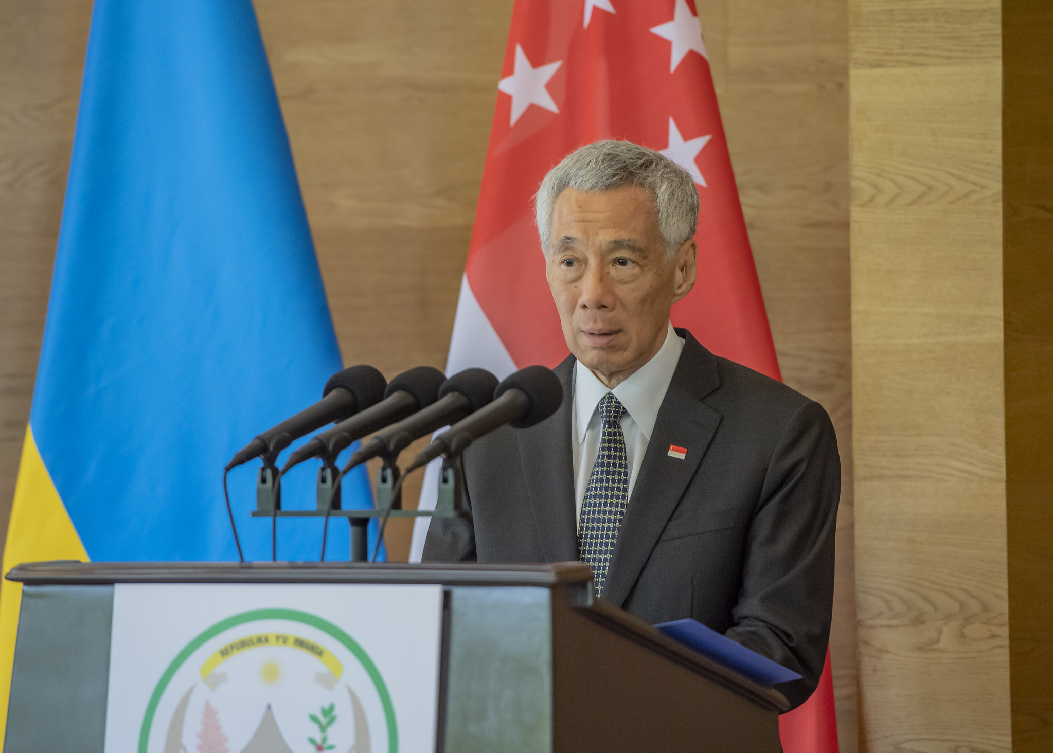 Lee Hsien Loong, Singaporean Prime Minister addresses the media during  a joint press conference following his meeting with President Kagame at Village Urugwiro on Monday, June 27.  Photo by Village Urugwiro
