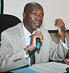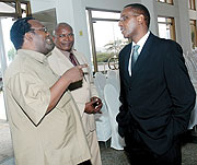 Senate President Vincent Biruta (R) listens to Hon. Juvenal Nkusi as Augustin Nzindukiyimana of the Ombudsmanu2019s office looks on at Parliament Yesterday. (Photo/ J Mbanda)