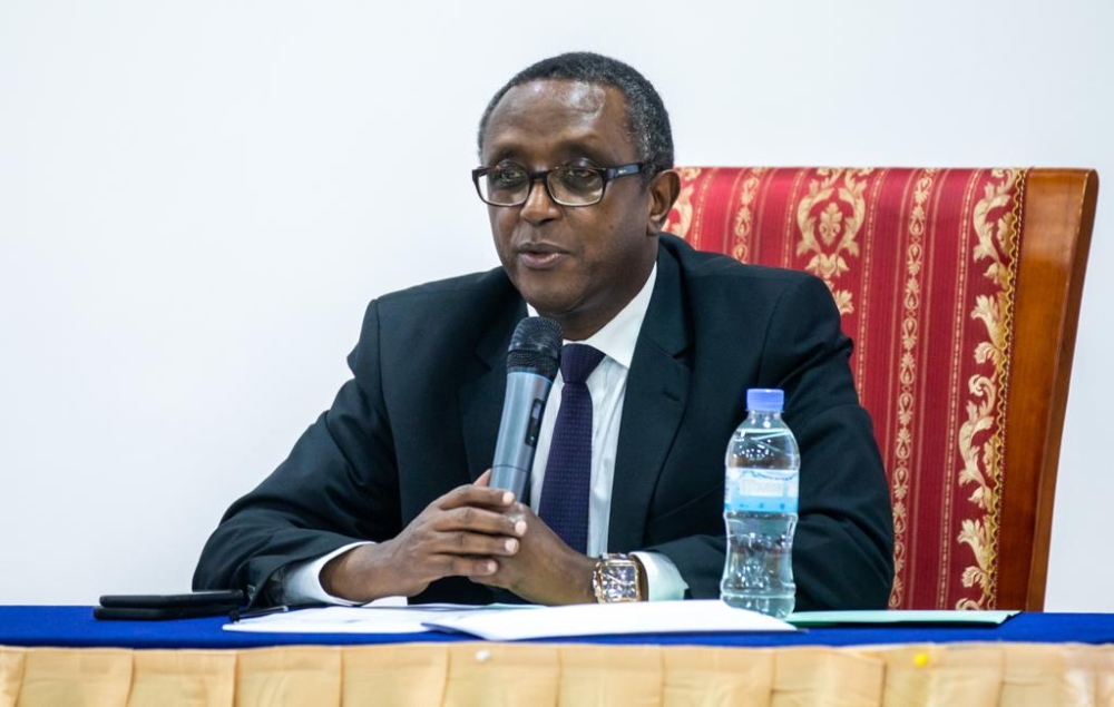 Minister for Justice and Attorney General Emmanuel Ugirashebuja addresses journalists in Kigali on September 23,2022. Photo By Craish Bahizi