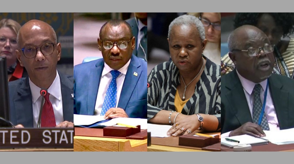 (L-R) US Alternate Representative for Special Political Affairs, Robert Wood; Rwanda’s Permanent Representative to the UN, Claver Gatete; UN Secretary General's Special Representative in DR Congo, Bintou Keita; and Congolese permanent representative to the United Nations, Georges Nzongola-Ntalaja.