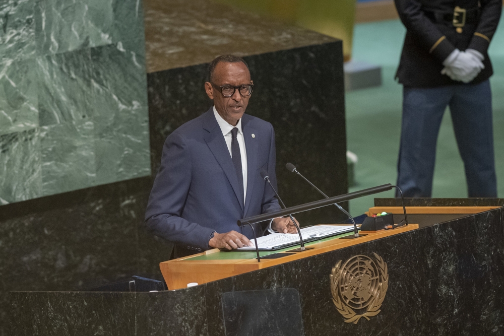 President Kagame addresses the General Debate of the 77th Session of the UN General Assembly in New York on September 21. / Photo: Village Urugwiro