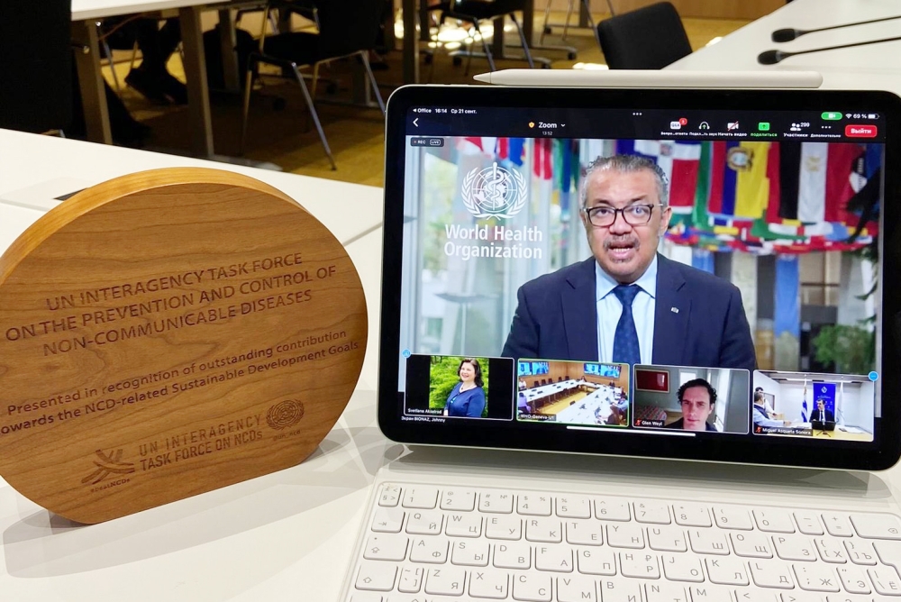 World Health Organization Director-General Tedros Adhanom Ghebreyesus virtually addresses the awarding event on September 21. Rwanda NCD Alliance was awarded by UN  in recognition of the organisation’s work in building multi-sectoral collaboration on Non-Communicable Diseases (NCDs) in Rwanda. Courtesy