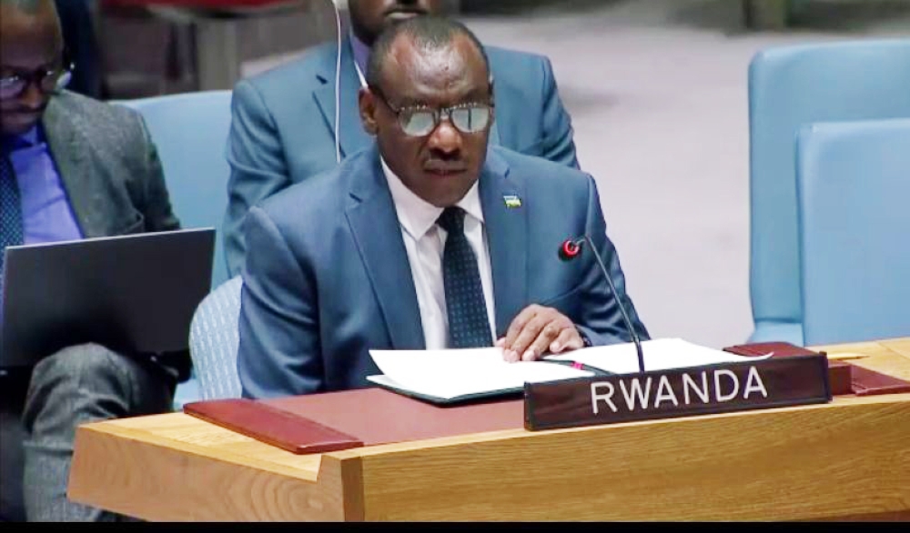 Rwanda’s Ambassador to the UN, Clever Gatete addresses the United Nations Security Council session on the situation concerning the Democratic Republic of the Congo on September 30. Courtesy