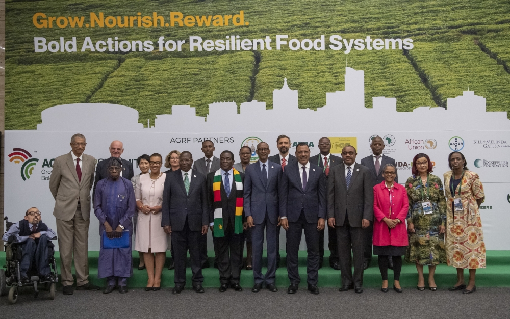 President Paul Kagame together with other present and former heads of state and other dignitaries during the Africa Green Revolution Forum in Kigali on Wednesday, September 7. Kagame called for the transformation of Africa’s food system to not only feed the continent but also create wealth.  Photo: Village Urugwiro.