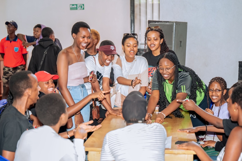 Teenagers follow some advice on how to use contraceptives during a campaign to raise awareness on AIDS. Photos by Emmanuel Dushimimana