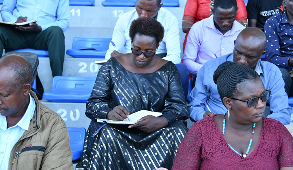 The Minister of National Unity and Civic Engagement, Jean-Damascène Bizimana, together with other officials, joins Kayonza residents during a past Umuganura celebration in Kayonza District. File photo