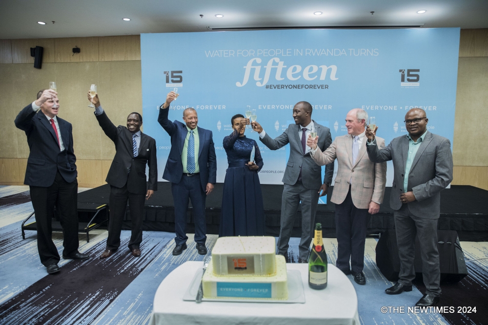 Officials toast during the 15-year anniversary celebrations at Kigali Marriott Hotel on February 5. All photos by Craish Bahizi