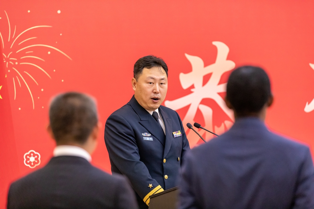 Li Dayi, the first-ever Chinese Defence Attaché accredited to Rwanda, speaking during the reception hosted by the Chinese Embassy in Rwanda on February 20.Photos by Dan Gatsinzi