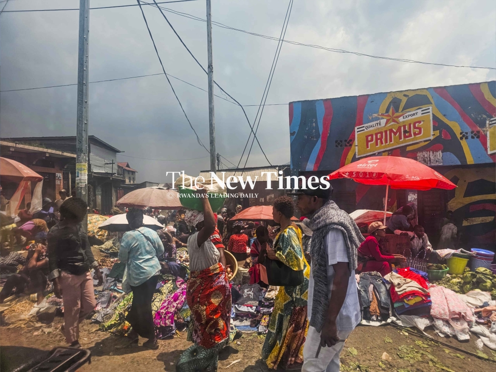 Women sell different goods at Birere market in Goma on Monday, February 10. PHOTO BY JAMES MUNYANEZA