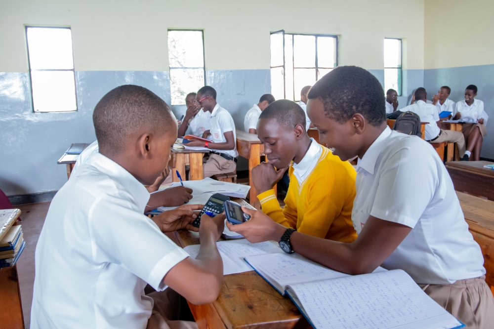 A teacher helps students with group work at  Institut Sainte Famille de Nyamasheke. Teachers play a big role in shaping their students' dreams. File photo.