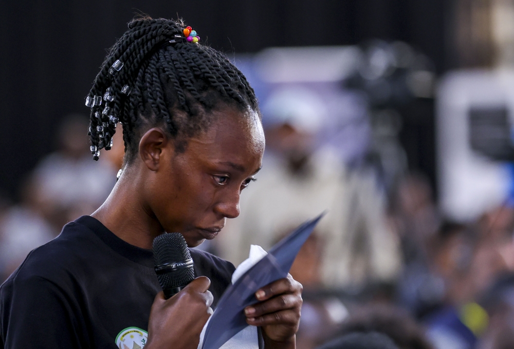 Chantal Umuhoza shares her testimony during Igihango cy'Urungano, an annual forum that commemorates the youth killed during the 1994 Genocide against the Tutsi, in Gisagara District on Friday, June 9.Photos by Olivier Mugwiza