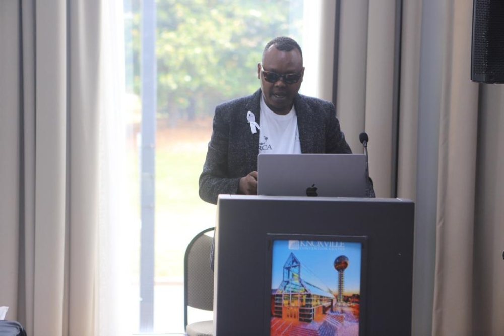 Kalisa Bahati  President of Rwandan Community in Tennessee addresses mourners during the commemoration of the Genocide against the Tutsi.