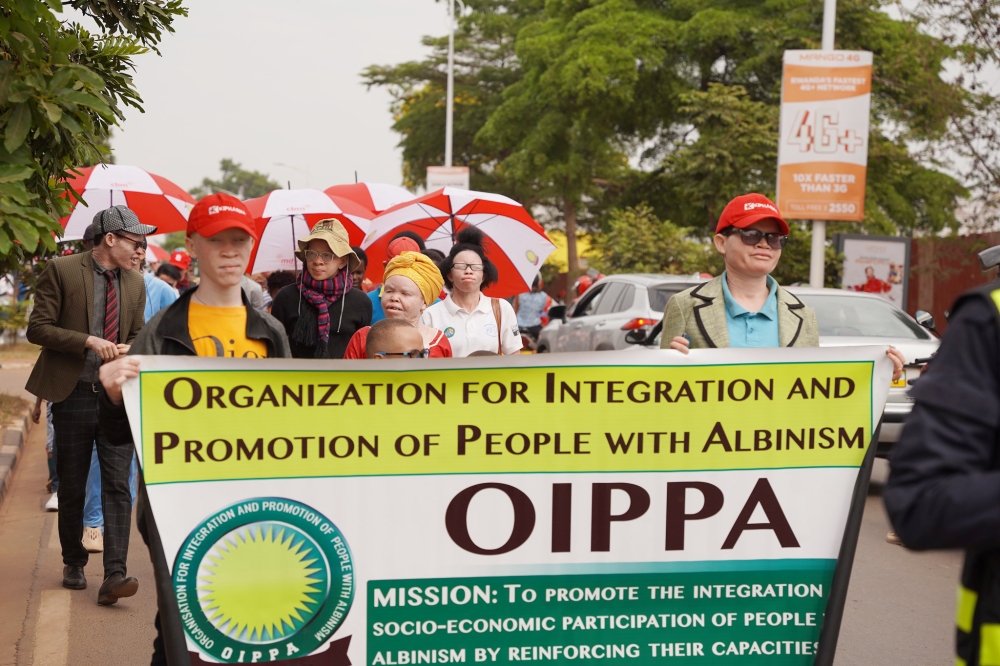 Members of Organization for the Integration and Promotion of People with Albinism (OIPPA) during a walk to raise awareness on the International Albinism Awareness Day in Kigali, on June 13. While celebrating the day, they revealed  that the sense of celebration is due to achieving significant milestones as a community that needs recognition. Photo by   Emmanuel Dushimirimana