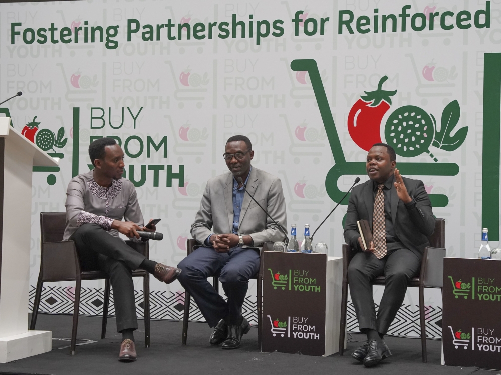 Dr Abdallah Utumatwishima, Rwanda’s Minister of Youth (R), speaks during a panel discussion.He emphasized that it’s time for young people in agriculture to shine, be supported, and be recognised for the transformation.
