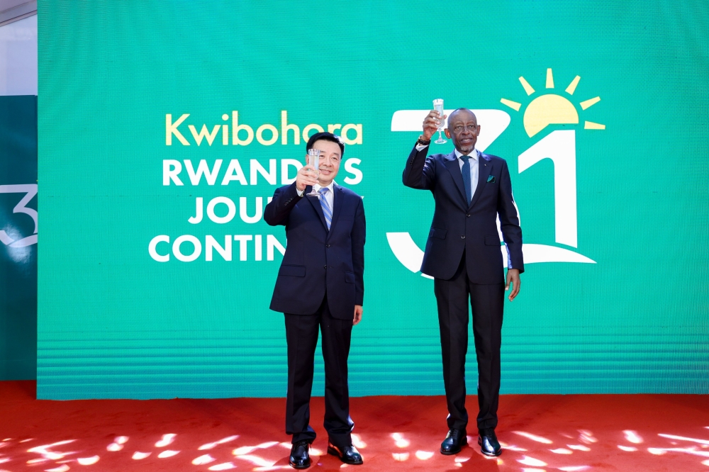 Virgile Rwanyagatare, the Director General for Asia at the Ministry of Foreign Affairs and International Cooperation and  Ali bin Hamad Al Aida, Chargé d’Affaires of the Qatari embassy in Kigali.