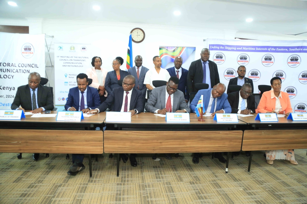 Celestine Uwineza- Managing Director of Premier Real Estate Services (L), and Fred Agaba Operations Manager at Premier Real Estate Services sign the  partnership agreement in Kigali. Courtesy