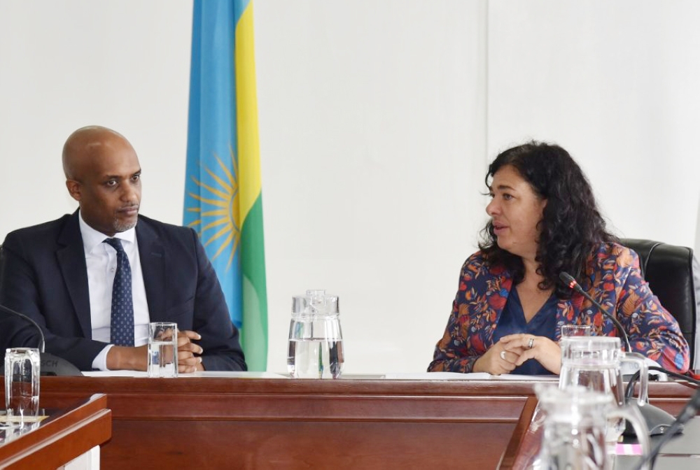 Prime Minister Edouard Ngirente and British High Commissioner  Alison Thorpe at his office in Kimihurura on November 28.
