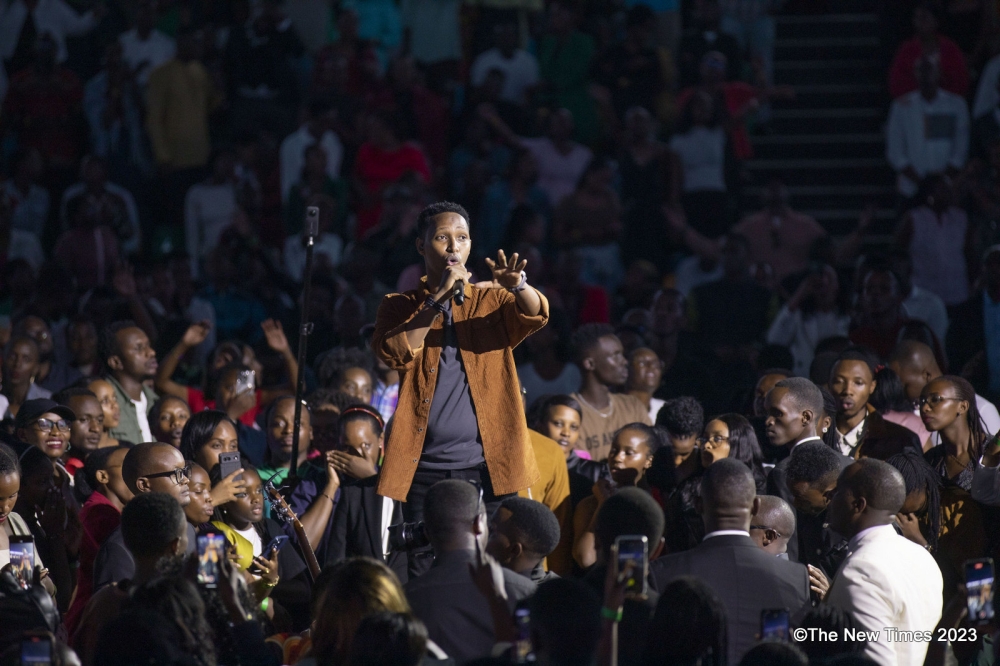 Edouard Bamporiki, the former Minister of State for Culture, speaks during Umushyikirano.
