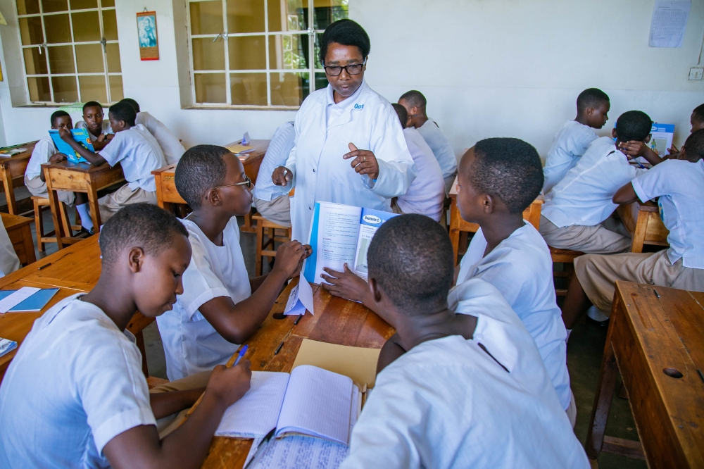 Gaspard Twagirayezu, the Minister of Education distributes exam papers during the official launch of the examination at GS Remera Protestant in Kicukiro District on Tuesday, July 23. Emmanuel Dushimimana
