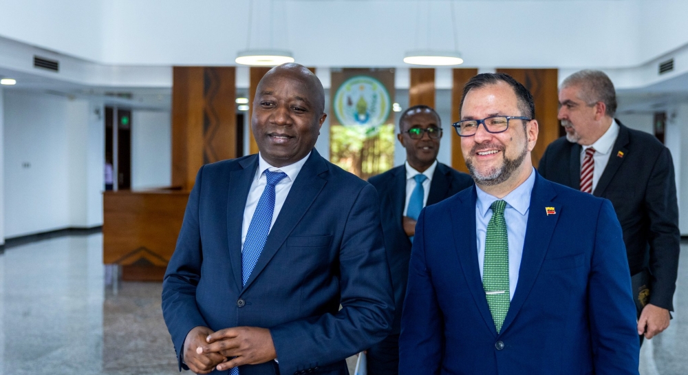 Prime Minister Edouard Ngirente meets with  his Central African Republic (CAR) counterpart Félix Moloua in Kigali  on Saturday, June 29. COURTESY