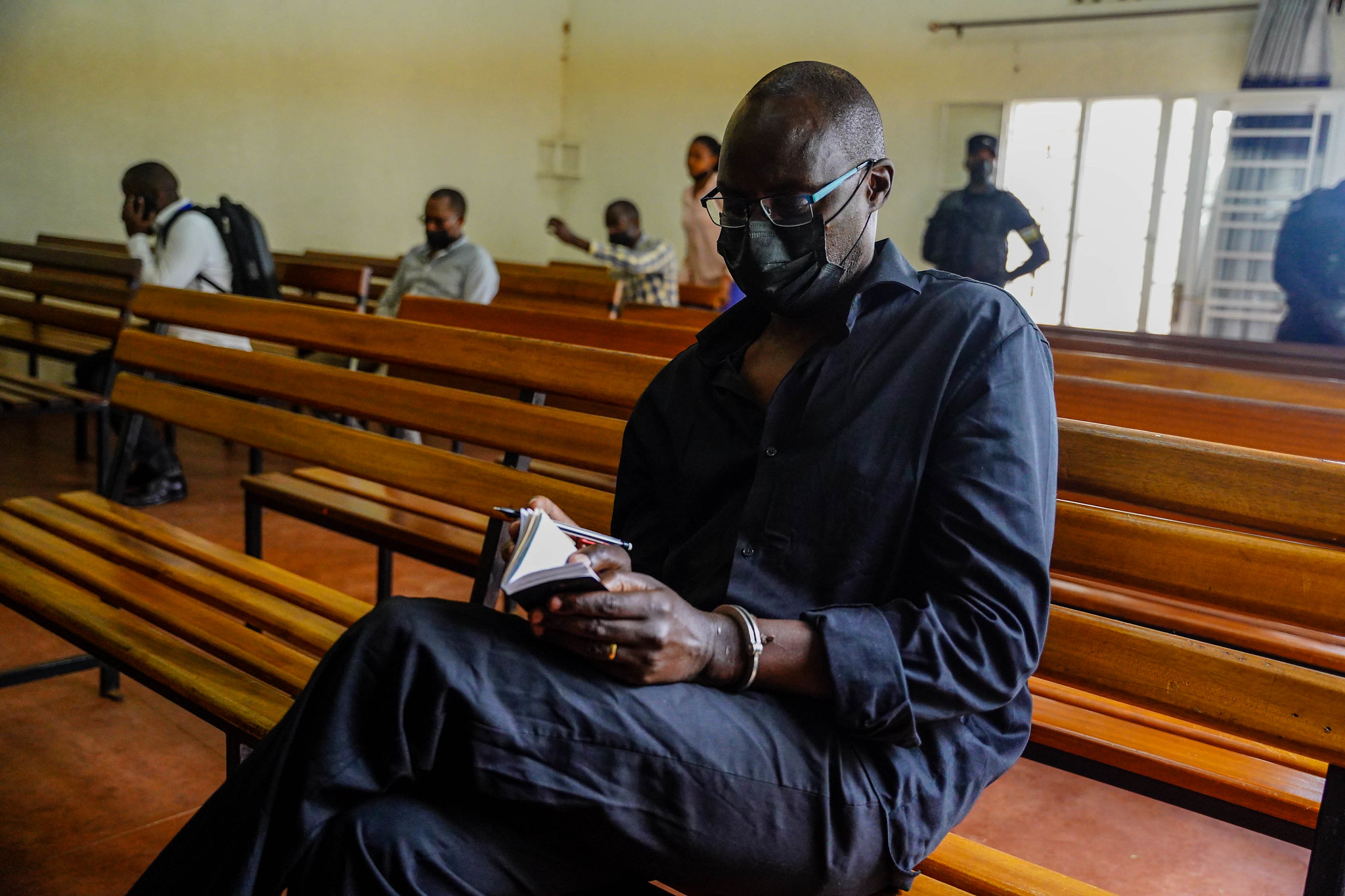 Democratic Green Party of Rwanda's flag bearer Frank Habineza  during the party’s campaign rally in Byumba Sector, Gicumbi District on July 10