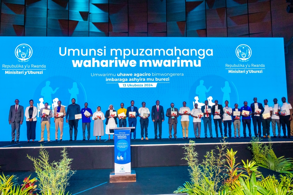 Minister of Education Joseph Nsengimana pose for photo with the best performers.