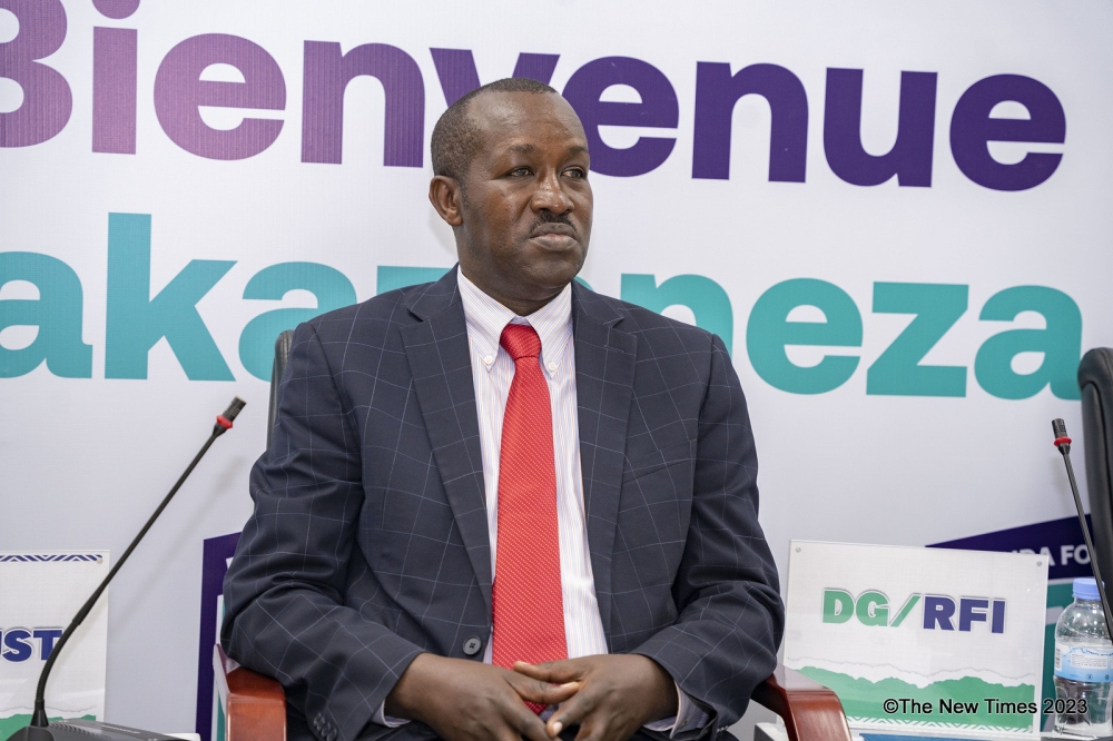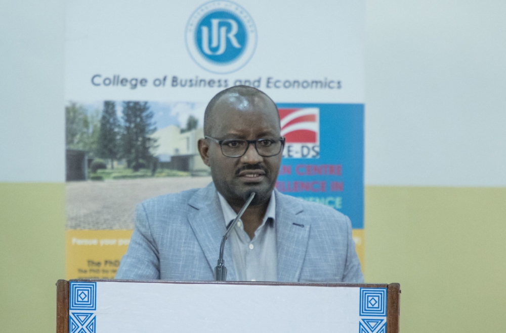 The Minister of Youth and Arts, Dr. Jean Nepo Abdallah Utumatwishima speaks during a panel discussion on March 22 at UR-CST.