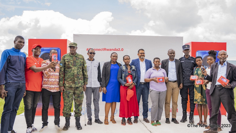 President Paul Kagame and First Lady Jeannette Kagame pose for a photo with students of Ecole Secondaire de Kayonza, the winners of the AI Hackathon at Intare Conference Arena on Saturday, March 16. Photo by Craish Bahizi