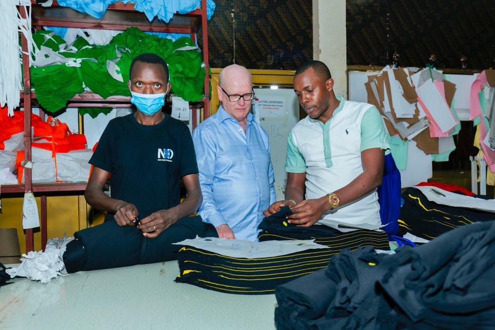 Thomas Ostros, European Investment Bank (EIB Global) Vice President during a guided tour of  New Kigali Designers and Outfitters, a garment factory located in Gasabo district, Gisozi sector. Courtesy
