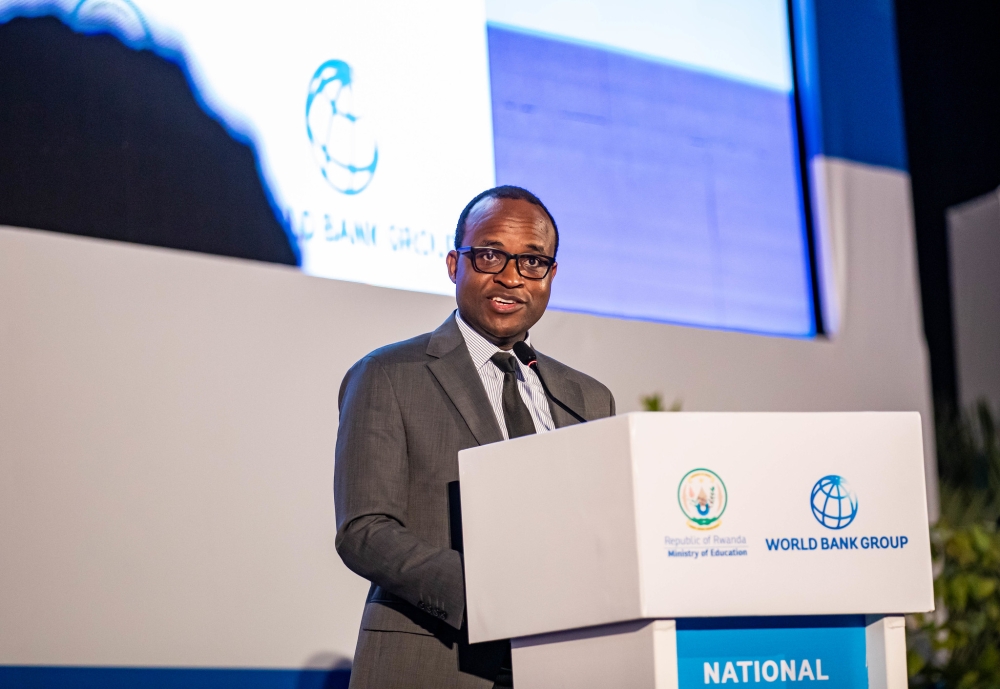 Minister of Education, Gaspard Twagirayezu delivers remarks during the fifth National Symposium for Foundational Learning held in Kigali on March 25. All photos by Dan Gatsinzi