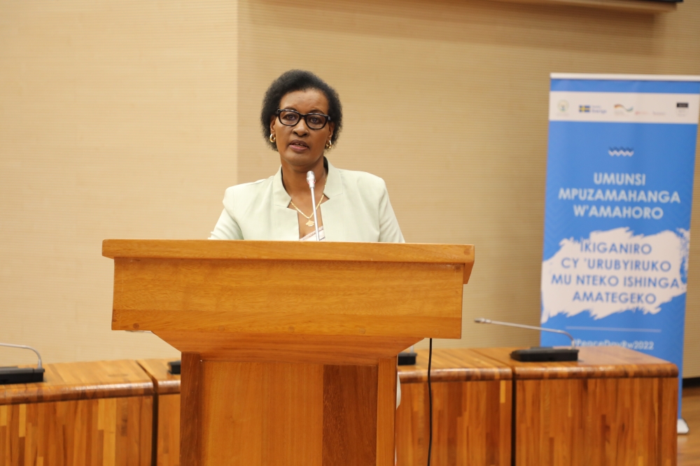 Minister of Gender and Family Promotion, Jeannette Bayisenge speaks at the celebration of Africa Women’s Day on July 31. Courtesy