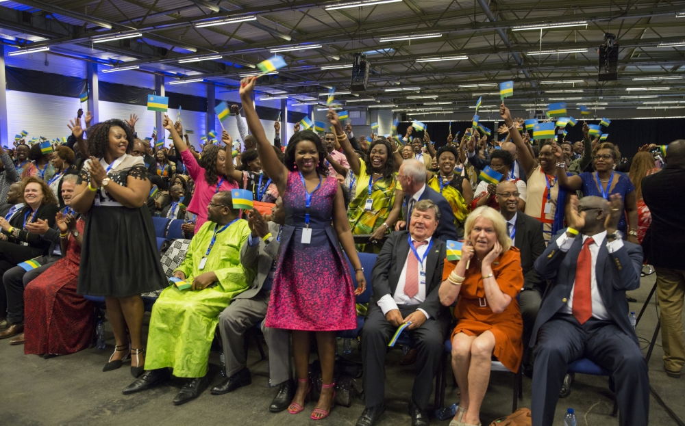 Some of over 6000 delegates expected to attend the 2023 Women Deliver Conference  in Kigali. Seen here take pictures after receiving their badges on Saturday, July 15. OLIVIER MUGWIZA