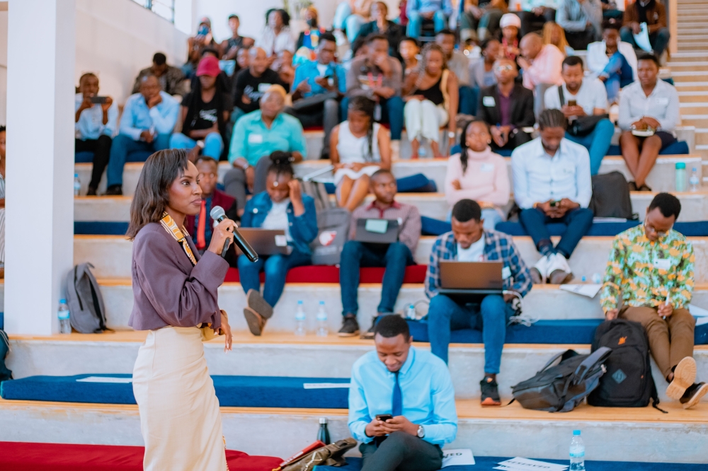The Chief Executive Officer of NCBA Rwanda, Lina Mukashyaka Higiro speaks at a side event at the Women Deliver 2023 Conference. Courtesy