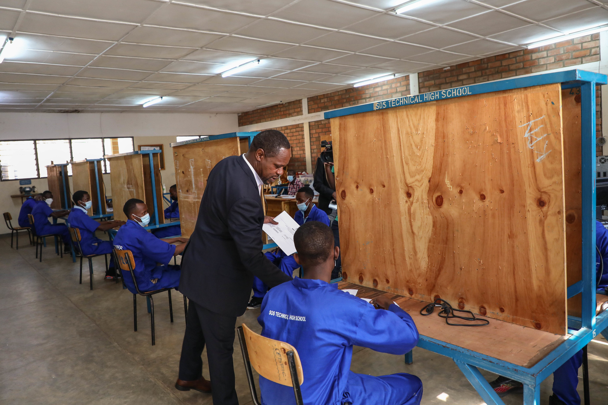 Bernard Bahati, Director General of NESA officially launches the TVET National Examinations at SOS Technical School in Kigali on June 27. Photos by Dan Nsengiyumva