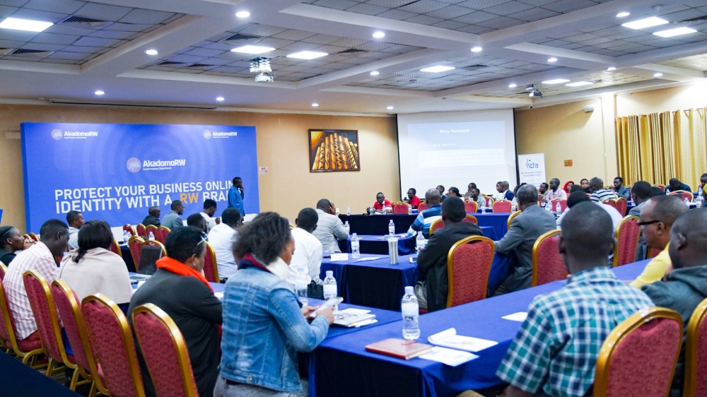 Rwandan business owners being mobilised on the importance of using dot RW domains during an event that took place at Lemigo Hotel on February 23. Courtesy photo