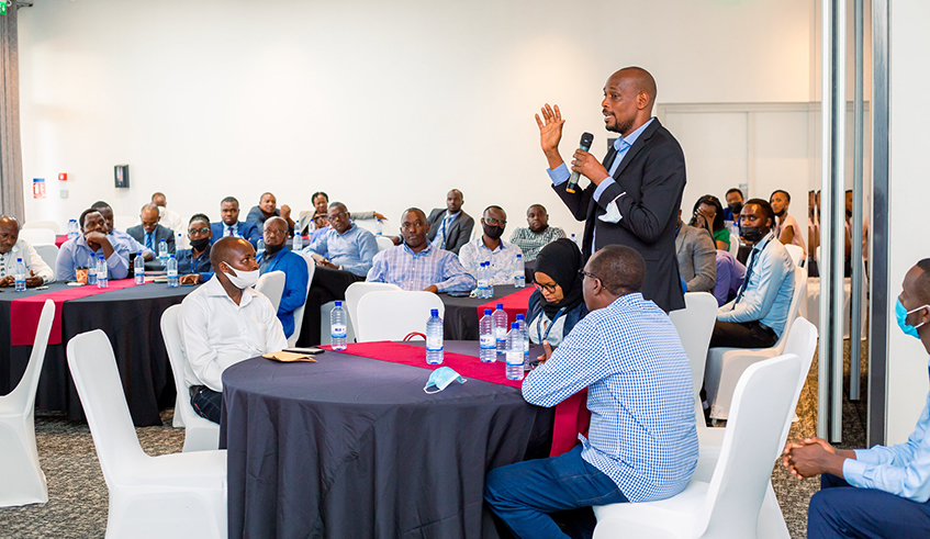 One of the customers makes a point during the meeting with Banque Populaire du Rwanda senior management team during the celebration of Customer Service Week. / Photo: Courtesy.