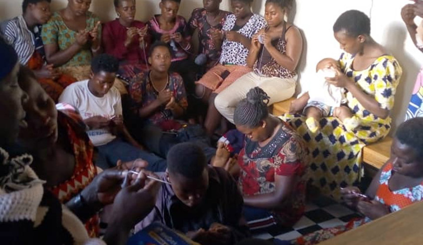 Women in Nyagatare District knitting after joining the Urubohero Relief Program in 2019. / Courtesy Photos