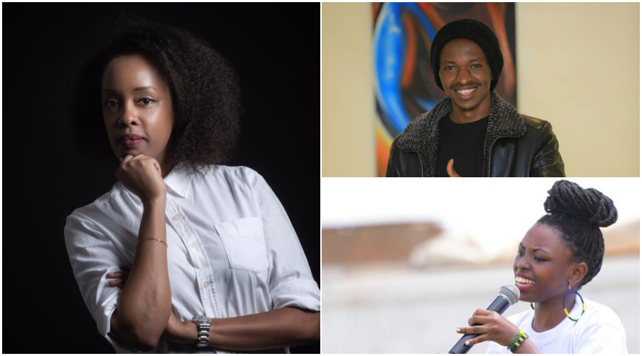 Spoken Word Rwandau2019s Diana Mpyisi (left), poets Junior Rumaga and Carine Maniraguha.