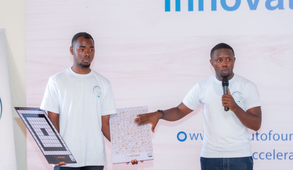 Dr Jerome Nshimiyimana pitching JoCare project during IAccelerator competition. Courtesy